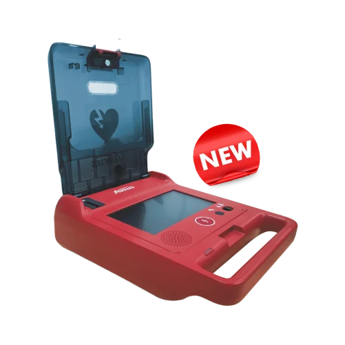 (When the lid is opened, the AED is automatically power on, and the voice guidance is activated, which immediately guides you on how to operate the AED)